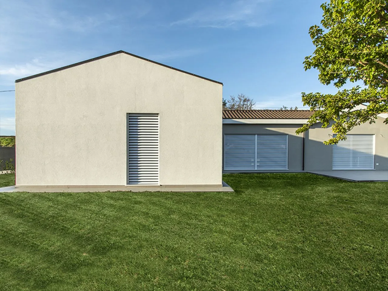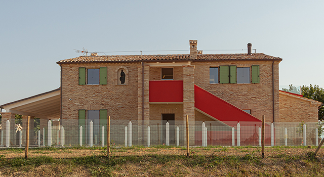 L'abitazione si trova a Fano (PU) in una zona riservata e tranquilla ed i due volumi in cui è stata realizzata non sono altro che il risultato dell'incontro tra la zona giorno e la zona notte.