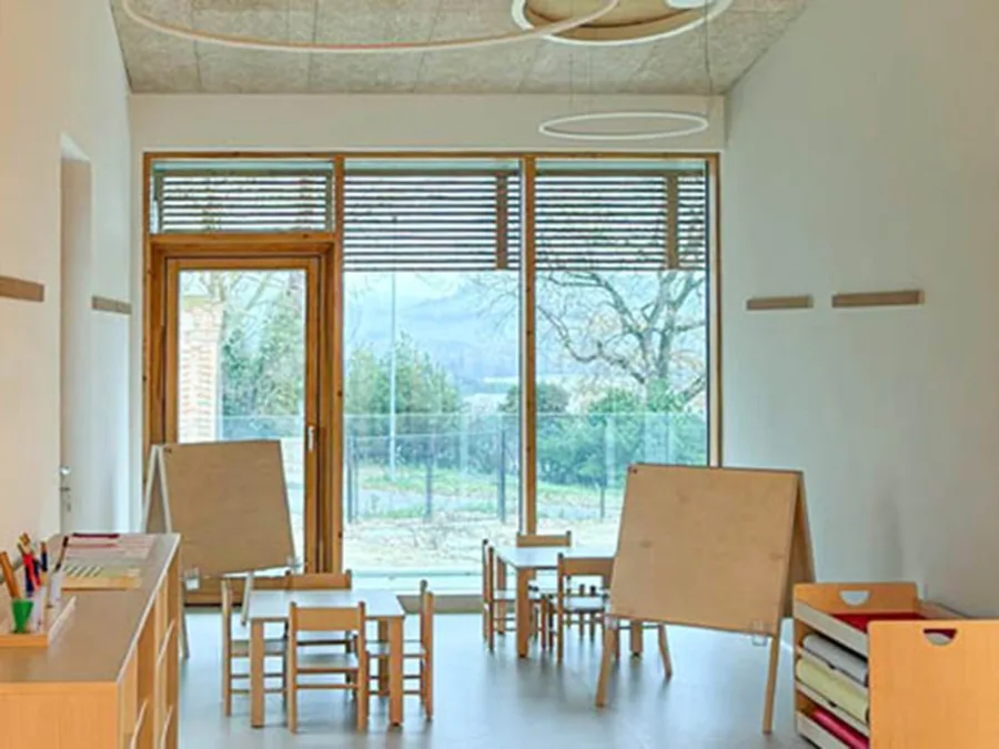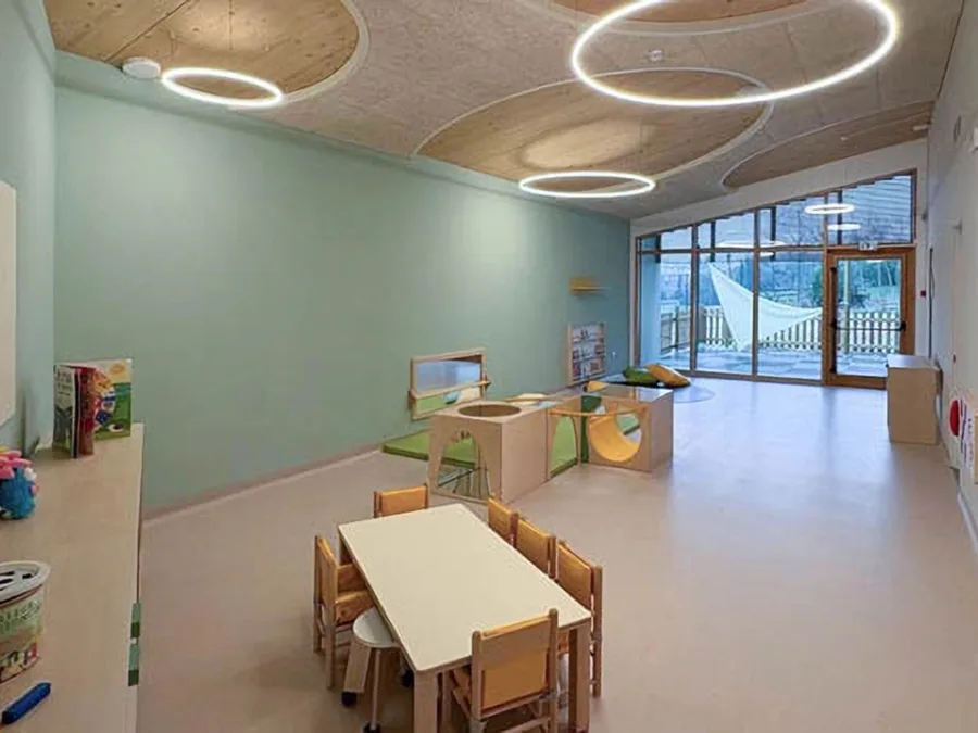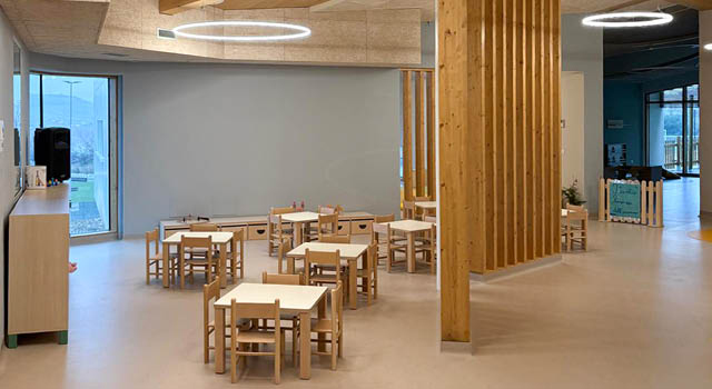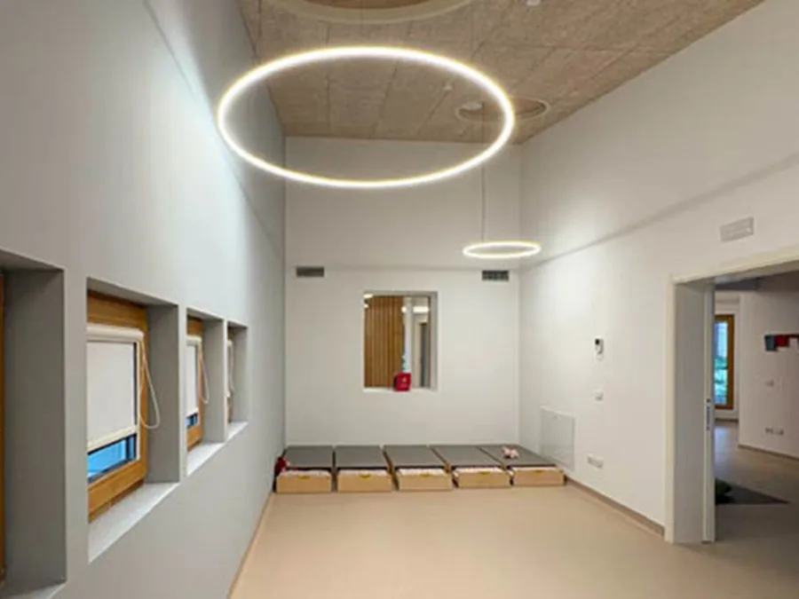 L’asilo nido “San Claudio” è stato progettato secondo i più avanzati criteri di efficienza energetica e comfort: un edificio in legno, che garantisce le migliori prestazioni antisismiche e un alto livello di benessere interno. Ampie vetrate, aree gioco interne ed esterne, spazi luminosi e arredi dal design nordico e funzionale rendono il nuovo nido un luogo accogliente, pensato per le prime esperienze di autonomia e relazione dei più piccoli.