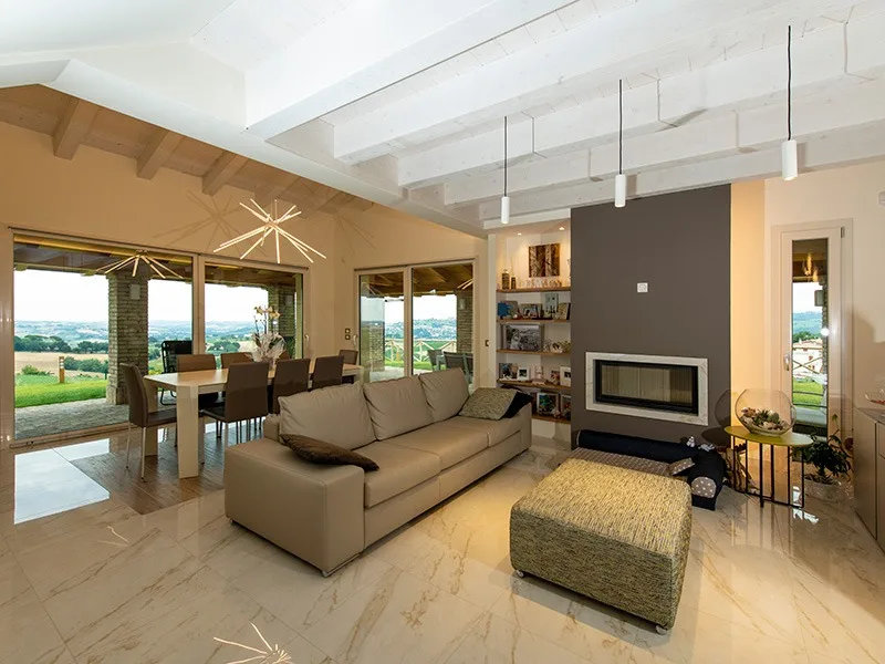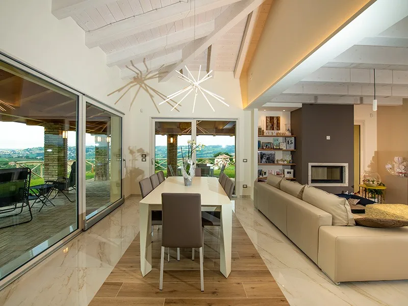La natura ed il paesaggio circondano l’abitazione ed il porticato di circa 60 mq e le ampie vetrate permettono di vivere appieno il contesto.