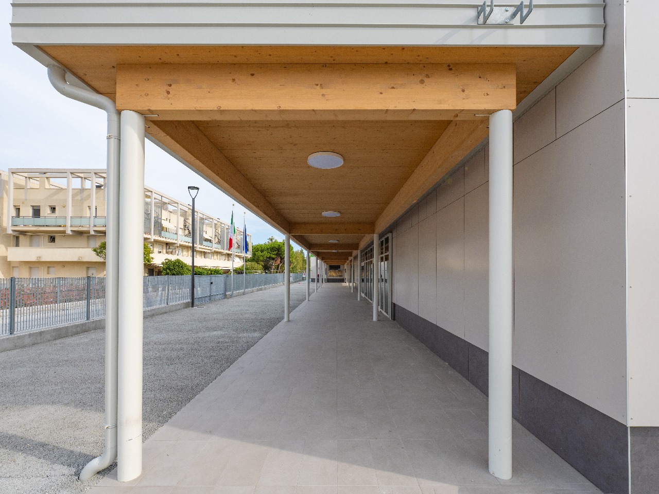 La viabilità interna è stata studiata per favorire mobilità pedonale e ciclabile, limitando il passaggio dei mezzi ai casi di emergenza e promuovendo il concetto di “scuola a piedi”. Il progetto è stato realizzato grazie alla collaborazione tra Comune di Senigallia, i suoi funzionari tecnici e una rete di professionisti e aziende private, tra cui lo Studio Marchetti dell’Ing. Attilio Marchetti Rossi, Mediocredito Trentino Alto Adige, Subissati e Cecconi Impianti. Le tempistiche sono state rapide e coordinate: dalla presentazione della proposta all’inizio del 2022, all’aggiudicazione della gara a maggio, all’approvazione del progetto definitivo a novembre e all’esecuzione dei lavori tra dicembre 2022 e luglio 2025.
