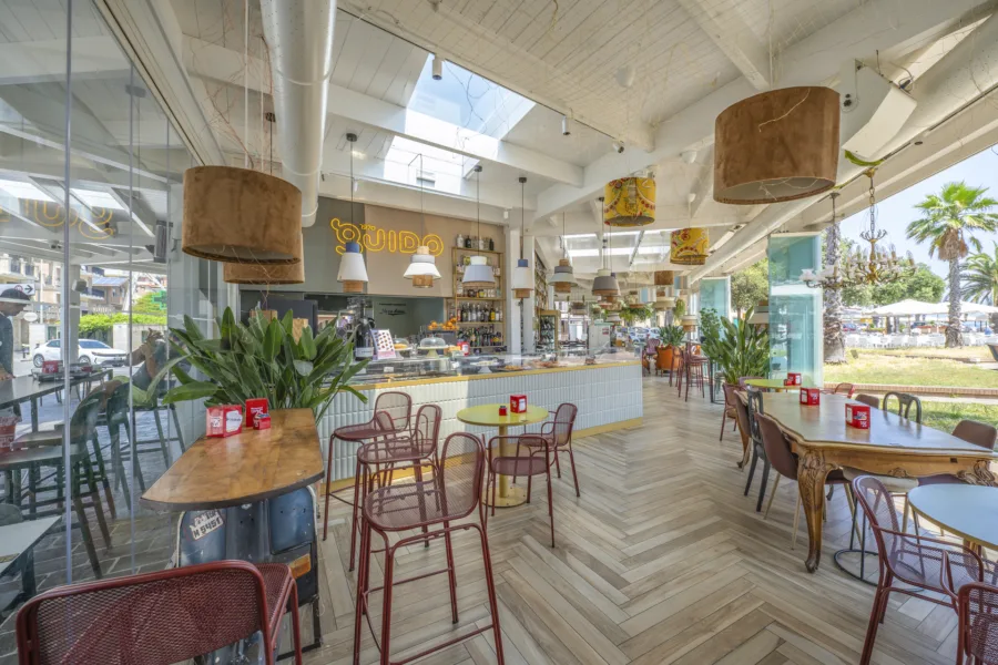 Il risultato è un locale accogliente e contemporaneo, pienamente integrato nel contesto urbano, dove la matericità calda del legno contribuisce a creare un’esperienza sensoriale piacevole, coerente con lo stile del marchio Guido e con il carattere del luogo.