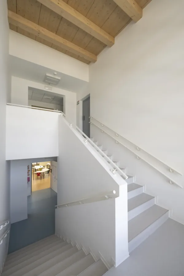 Materiali naturali e tecnologie avanzate si combinano per restituire un ambiente sano, flessibile e inclusivo, in cui ogni elemento contribuisce a un’esperienza scolastica che guarda avanti, con attenzione alla sostenibilità, alla sicurezza e alla qualità dell’ambiente costruito.