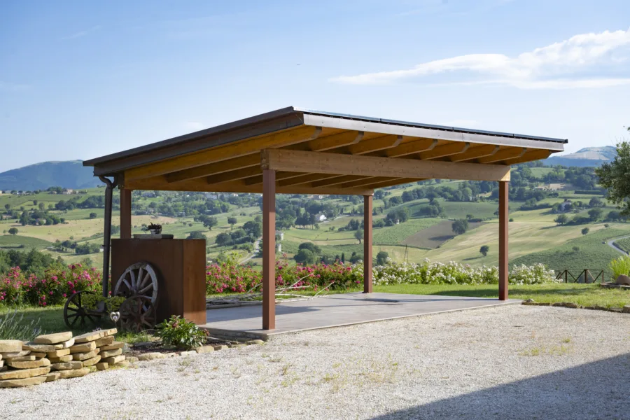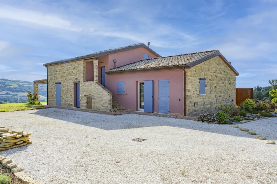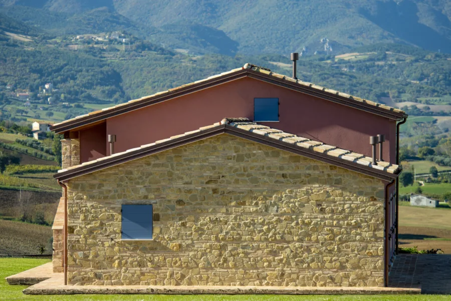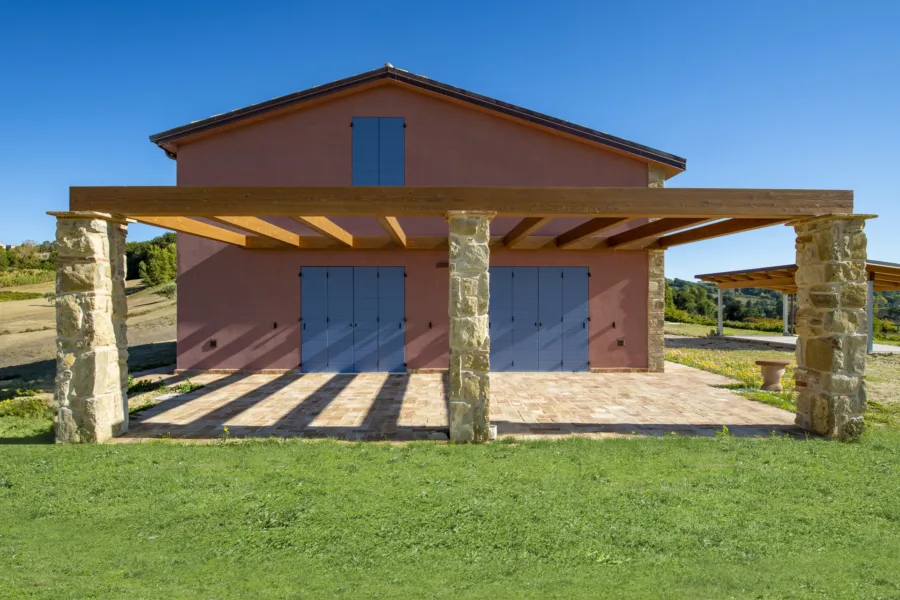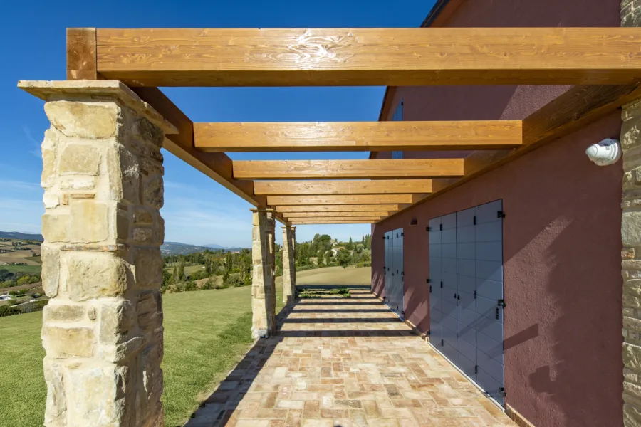 Gli spazi interni si aprono verso l’esterno tramite aperture studiate per valorizzare la luce naturale e creare continuità percettiva con il contesto.