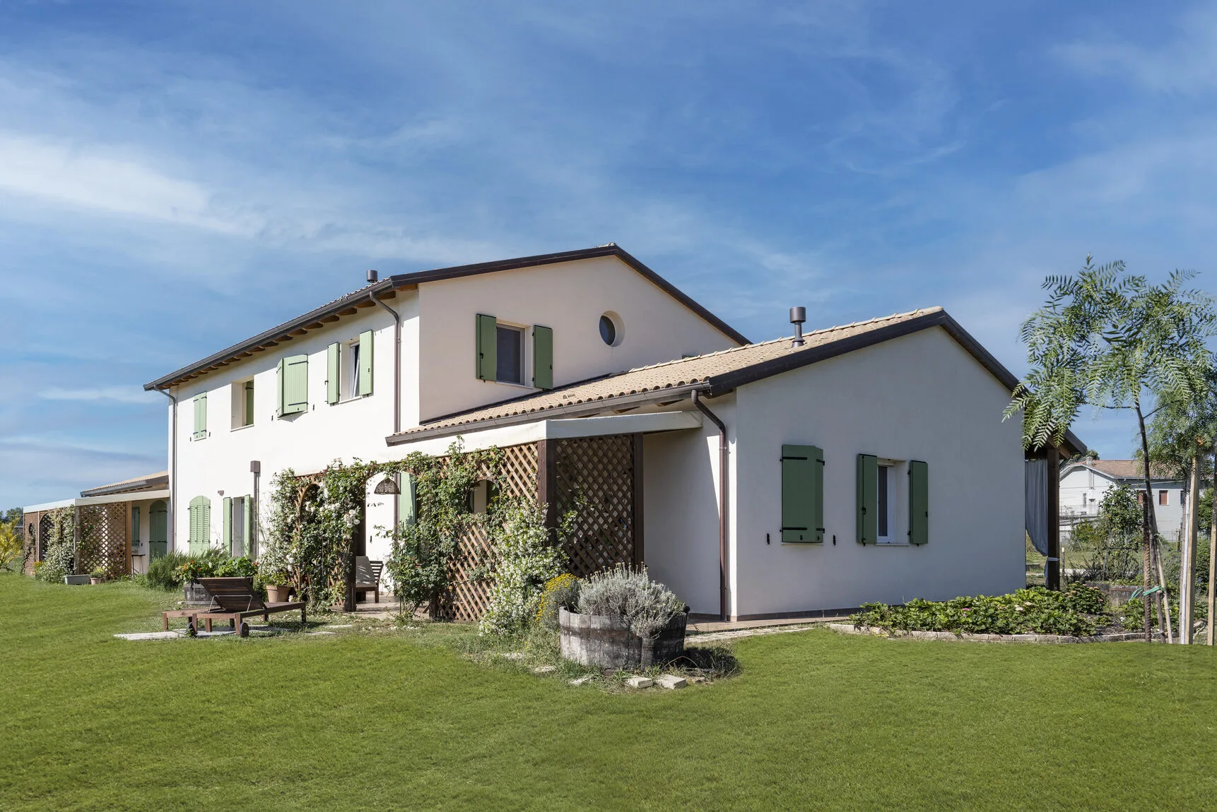 Distribuita con equilibrio tra aree giorno e zona notte, la villa offre ambienti accoglienti e funzionali, disegnati su misura per esigenze familiari senza rinunciare a qualità spaziale. Il risultato è una casa che coniuga tradizione e innovazione, con un approccio sostenibile, confortevole e armonico con il contesto.