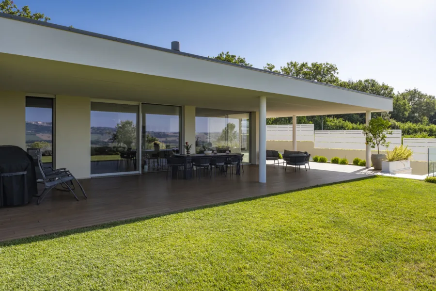 Materiali, dettagli costruttivi e finiture sono calibrati per restituire un linguaggio architettonico contemporaneo, capace di unire estetica e prestazioni, e definiscono una casa in cui comfort, sostenibilità e stile convivono in armonia.