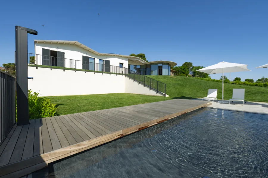 Una villa che interpreta lo stile contemporaneo con linee essenziali, grandi aperture e spazi che dialogano con il paesaggio.