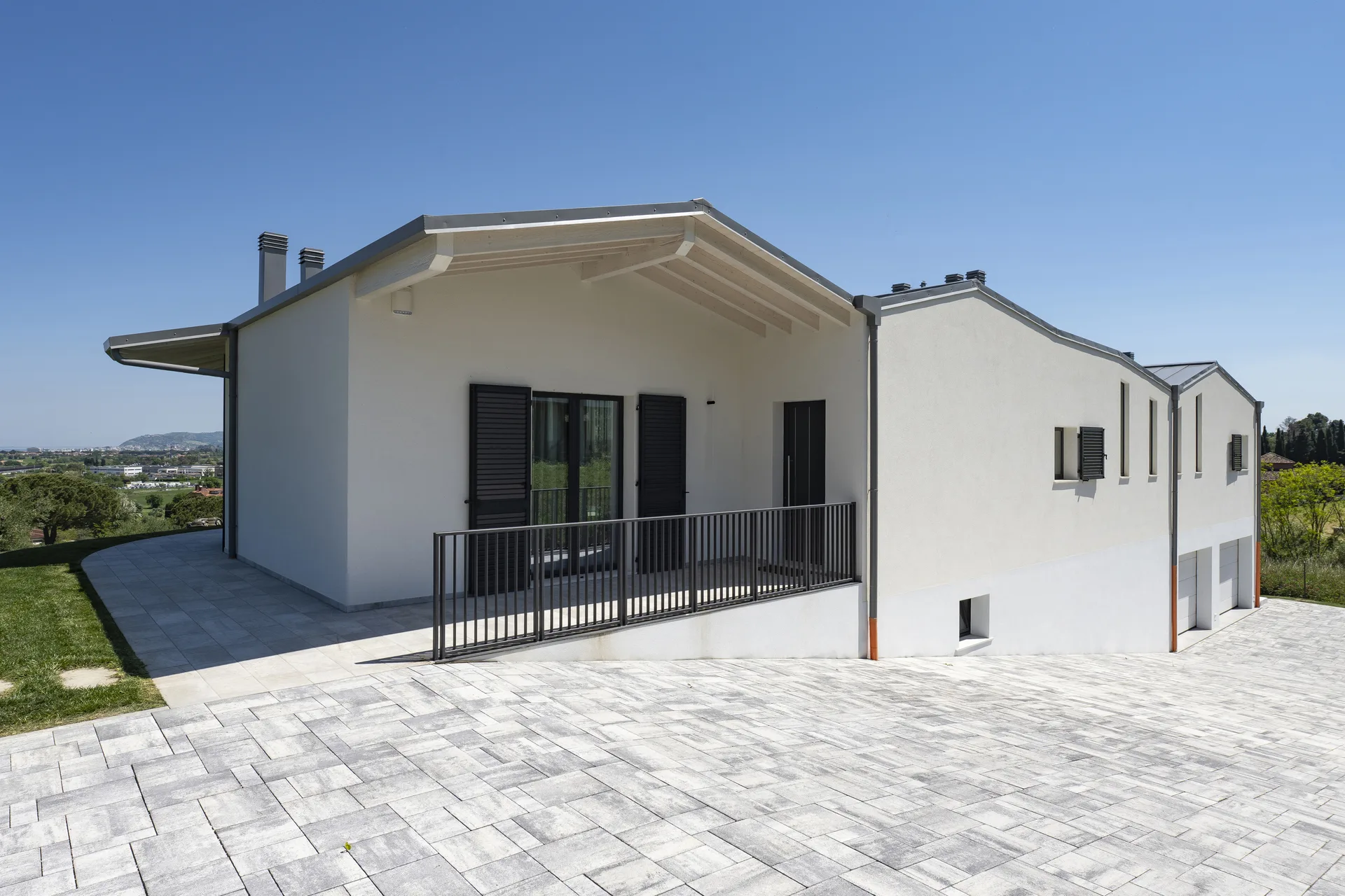 Una villa monofamiliare in stile contemporaneo che valorizza volumi puri, ampie superfici vetrate e un’organizzazione degli spazi altamente funzionale.