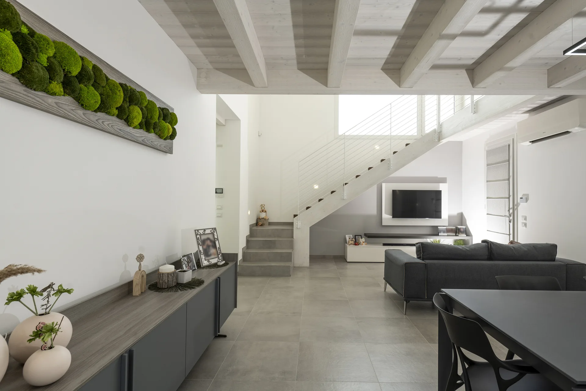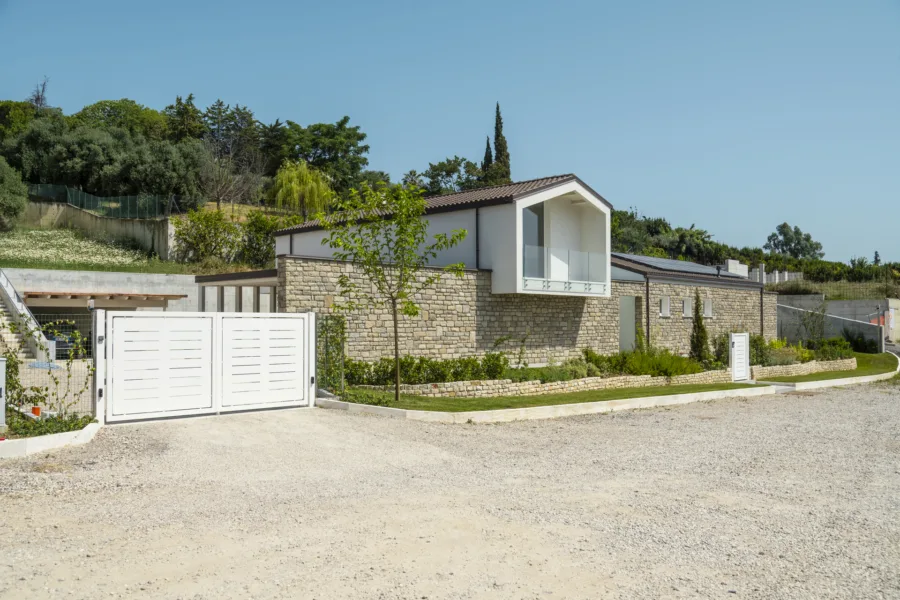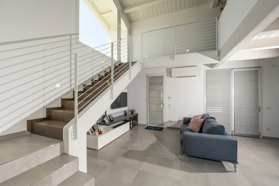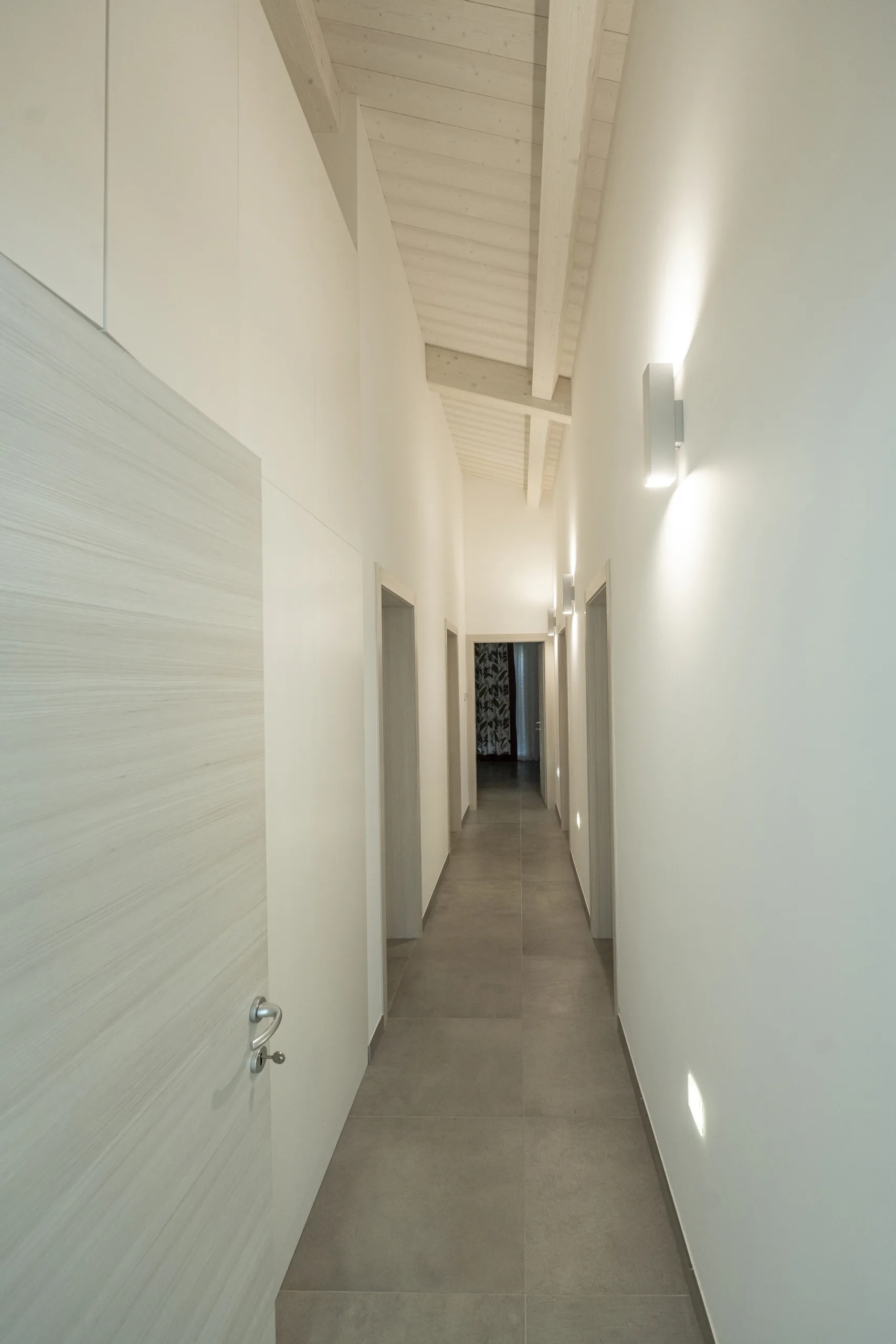 Le aperture sono studiate per favorire la connessione visiva con l’esterno, permettendo alla luce naturale di accompagnare la vita quotidiana. La distribuzione degli ambienti è pensata per offrire funzionalità e qualità spaziale, con un equilibrio tra aree giorno aperte e zone notte riservate.