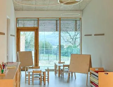 L'asilo nido "San Claudio" è stato progettato secondo i più avanzati criteri di efficienza energetica e comfort: un edificio in legno, che garantisce le migliori prestazioni antisismiche e un alto livello di benessere interno. Ampie vetrate, aree gioco interne ed esterne, spazi luminosi e arredi dal design nordico e funzionale rendono il nuovo nido un luogo accogliente, pensato per le prime esperienze di autonomia e relazione dei più piccoli.