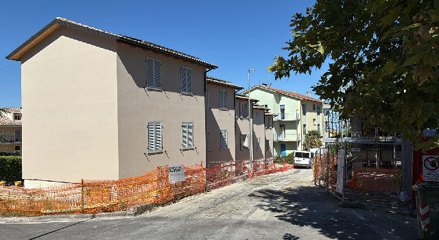 Il progetto prevede cinque unità abitative a schiera, distribuite su due livelli fuori terra, con una zona interrata dedicata a garage e locali di servizio. Un intervento nato dal processo di demolizione e ricostruzione di abitazioni danneggiate dal sisma, con l’obiettivo di restituire nuova vita al territorio attraverso soluzioni moderne, sicure e sostenibili.