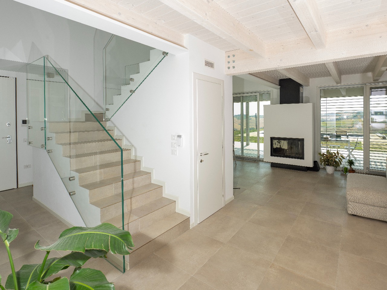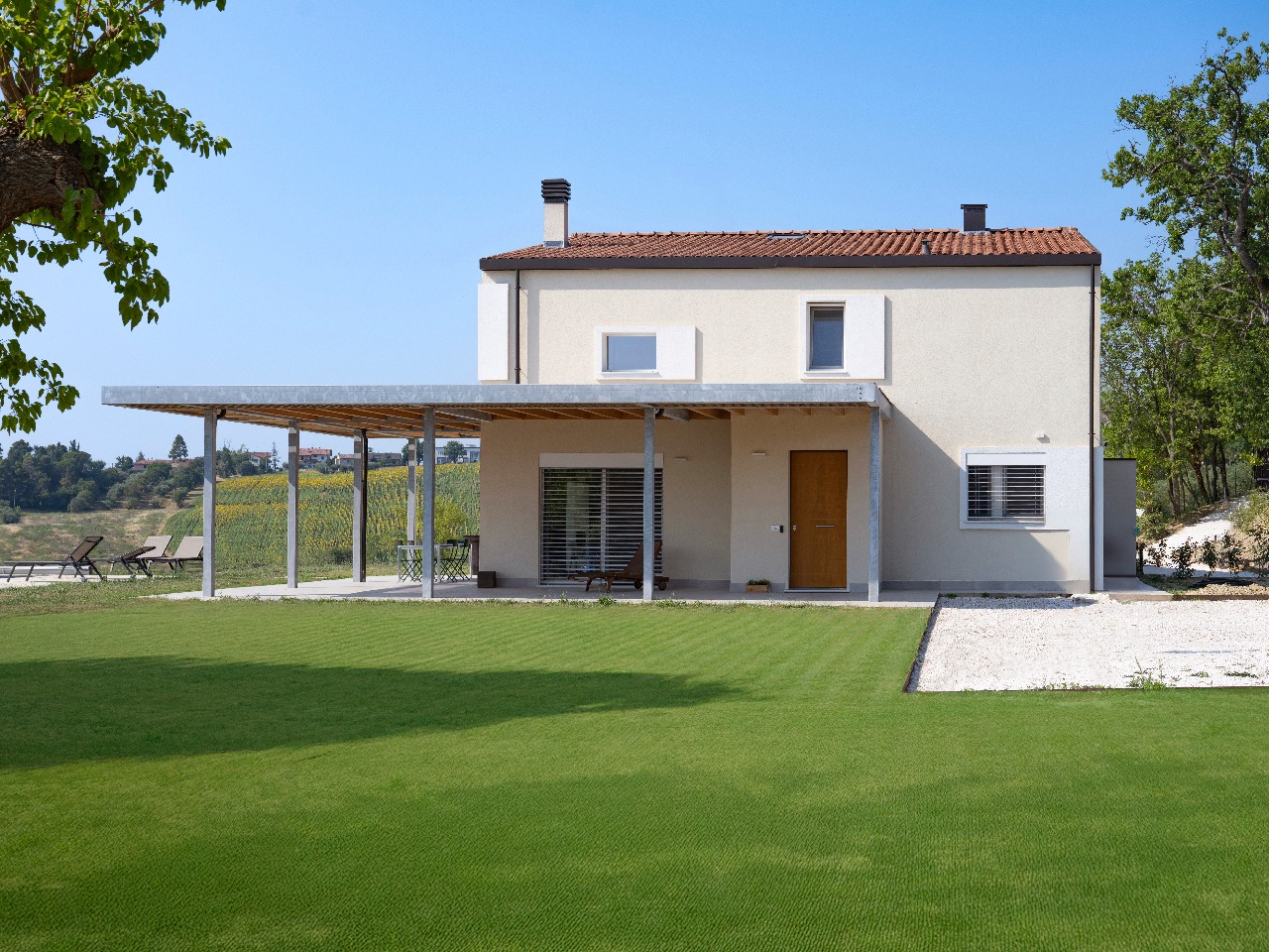 Situata a Belvedere Ostrense (AN) tra le dolci colline marchigiane, questa villa prefabbricata in legno lamellare rappresenta un dialogo armonioso tra architettura contemporanea, tradizione rurale e sostenibilità ambientale.