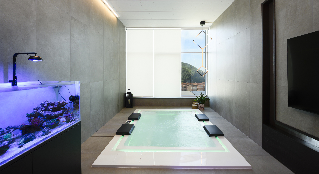 La villa integra inoltre una Zona Relax, un vero e proprio spazio di benessere domestico pensato per offrire relax e rigenerazione in un’atmosfera intima e raffinata.