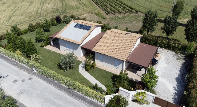 L’efficienza energetica è uno degli elementi distintivi di questo progetto. La villa è dotata di un impianto fotovoltaico e di un impianto solare termico, soluzioni che garantiscono autonomia energetica e riduzione dell’impatto ambientale, rendendo la casa un esempio concreto di edilizia sostenibile.